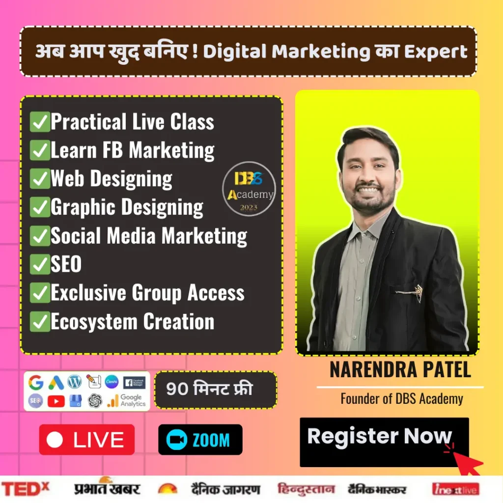 मैं आपको अपने Mentor Narendra Patel Sir के बारे में बताना चाहता हूँ, जो DBS Academy के Founder और एक अनुभवी Digital Marketer हैं।